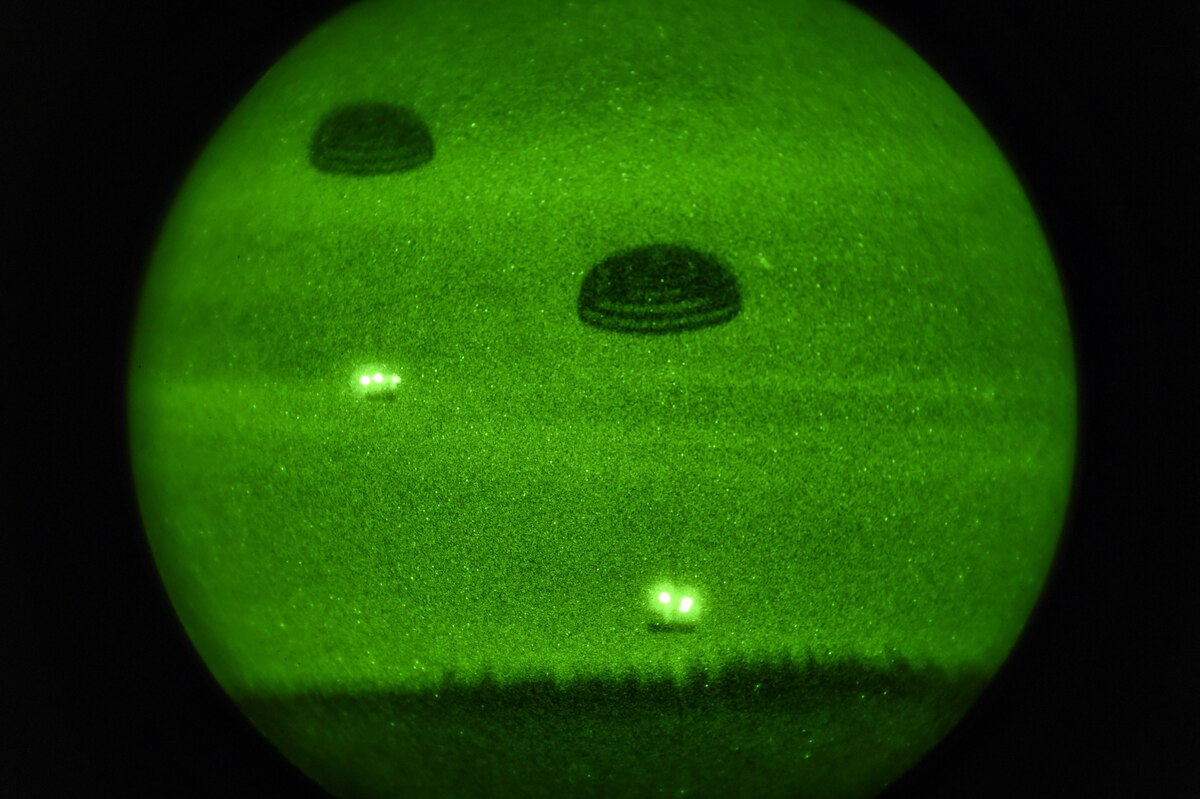 An MC-130H Combat Talon II drops cargo bundles during Task Force Task Force Exercise Southern Strike at Camp Shelby, Miss., Nov. 1, 2016. The MC-130H’s mission involves global day and night, insertion, extraction and resupply of special operations forces by low or high altitude operations, in adverse weather conditions. (U.S. Air Force photo by Senior Airman Jeff Parkinson)